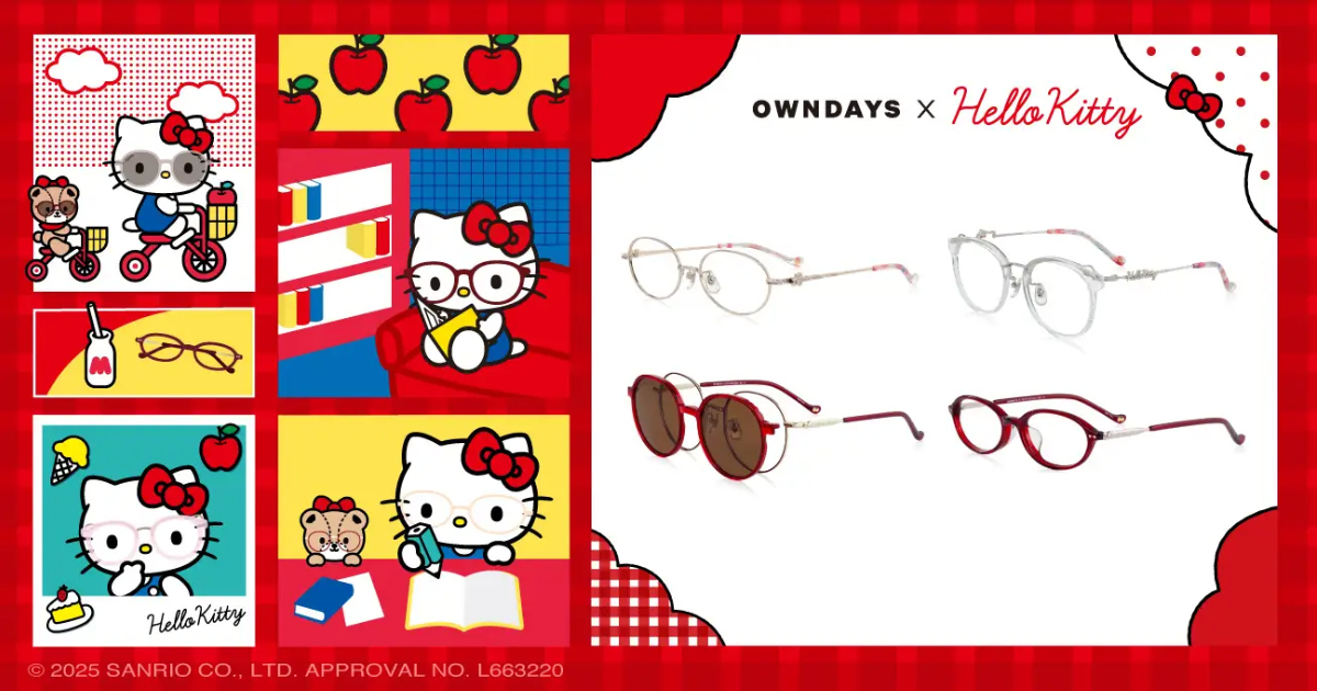 近日宣布與三麗鷗明星角色最具代表性的「Hello Kitty」首次合作,推出全新的眼鏡系列「OWNDAYS × Hello Kitty」。這次一口氣推出 8 種款式,從閃亮蝴蝶結裝飾的款式,到直接把 Hello Kitty 臉融進設計裡的夢幻眼鏡,將於2025年12月4日於日本門市與官網同步開賣!