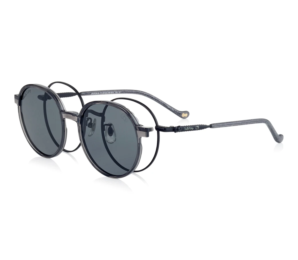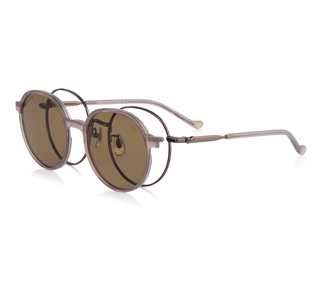 「出門 model」是圓框 2way 眼鏡,附 SNAP 鏡片,可以瞬間從一般眼鏡變身成有質感的城市系太陽眼鏡。太陽眼鏡鏡片上還悄悄印了蝴蝶結跟 “Hello Kitty”。鏡腳做成蕾絲風紋路,左邊是蝴蝶結+字樣,右邊是蘋果圖案,細節滿滿。