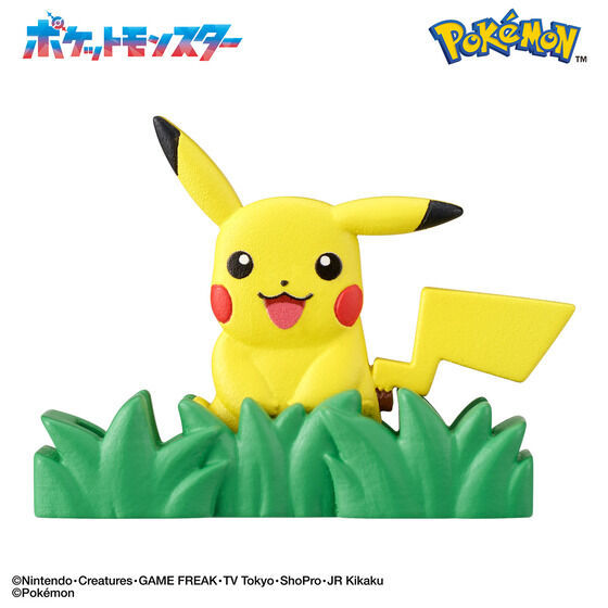 另外,商品內容中還會有一個草地造型的底座,可以跟入浴劑當中的寶可夢半立體模型互相搭配,營造出寶可夢在草地中出沒的樣貌。一共有「皮卡丘」、「謎擬Q」、「葉伊布」、「敲音猴」跟難以見其真面目的傳說寶可夢「時拉比」。