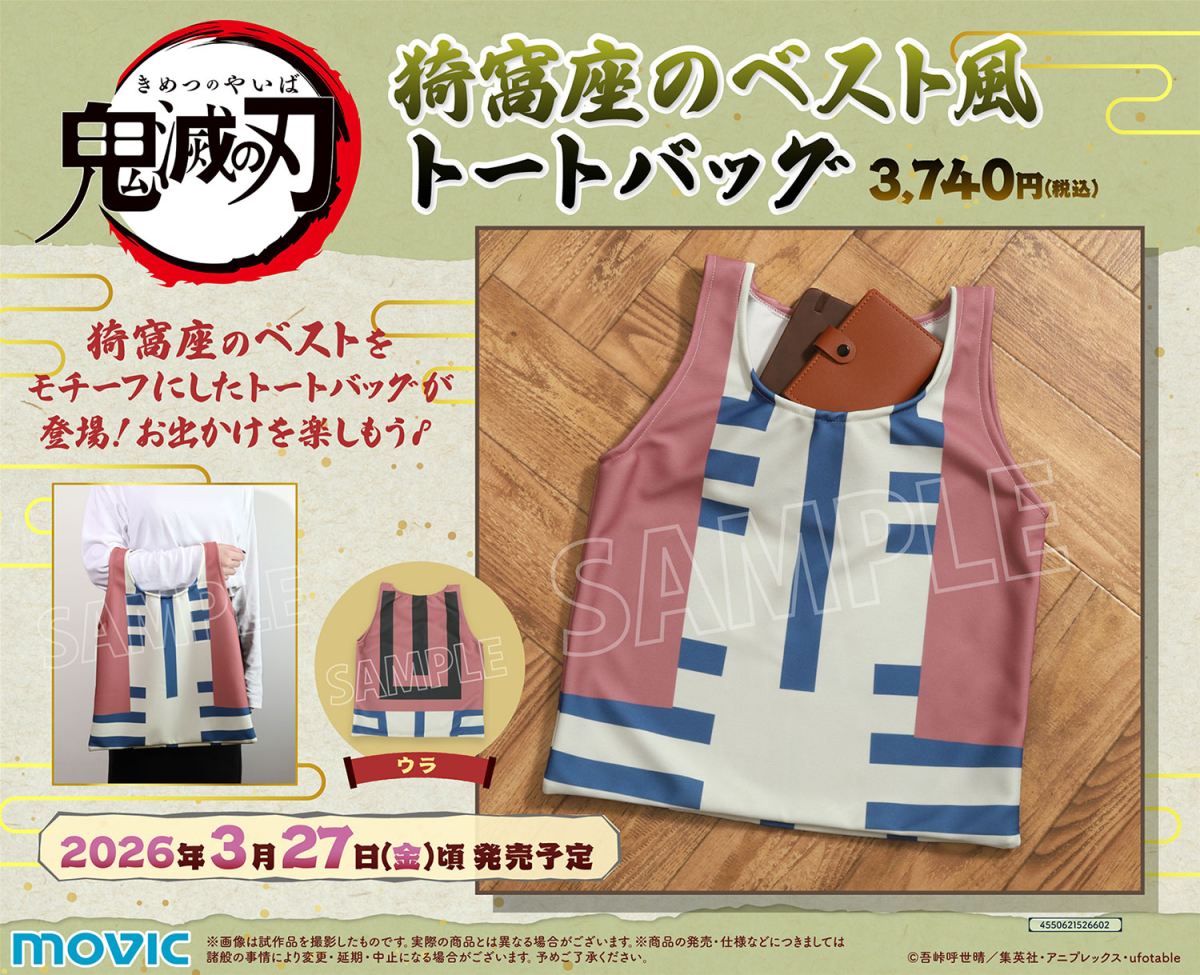 近日宣布將推出劇場版《鬼滅之刃 無限城篇 第一章 猗窩座再襲》的新商品,以劇中出現的上弦之參「猗窩座」作為靈感設計的托特提袋,一釋出趣味的造型也獲得粉絲關注。售價為3,740日圓,預計將於2026年3月底正式發售。