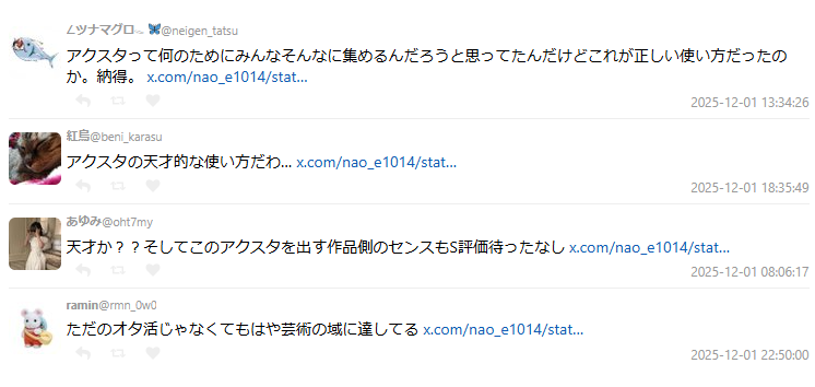 壓克力立牌的「正確使用方式」被重新定義,以往常有人疑惑「為什麼大家要收那麼多壓克力立牌?」但這次風潮讓不少網友恍然大悟:「原來這才是壓克力立牌的真正用途啊!」、「這使用方式天才級。」、「這已經不是二創,是藝術。」