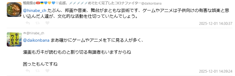 有人指出,很多人仍把遊戲、動畫看成「給小孩的東西」,覺得電影舞台劇才是正統藝術,因此在文化決策場合永遠是那些產業的人出面。