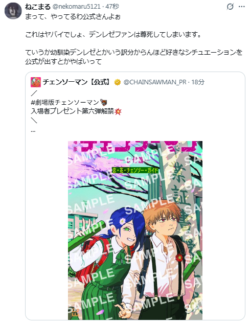 日本官方宣布了第六波入場特典。從12月6日起,觀影觀眾將能獲得第一彈所贈送的小冊子漫畫,但封面改為藤本樹特別繪製的「蕾潔與淀治的小學畢業式」的插圖,瞬間也在日本 X 上掀起話題,這波特典讓許多粉絲真的是又苦又甜。