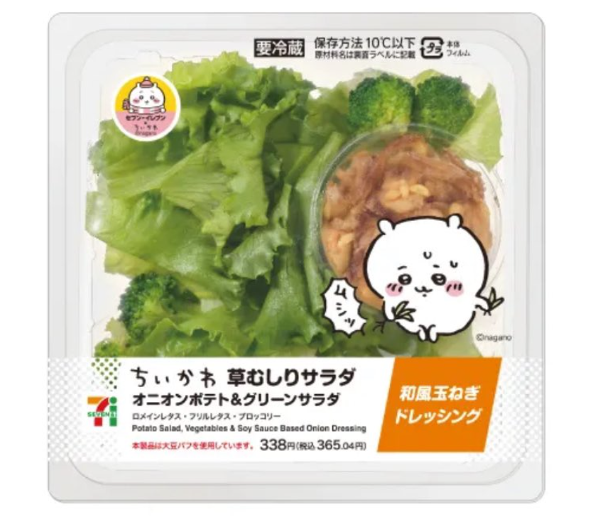 插畫家ナガノ( NAGANO ) 的作品《吉伊卡哇》短時間席捲各地,推出動畫後更以別具特色的風格吸引人們喜愛,近期跟日本7-11合作,其中一款「吉伊拔下來的草」沙拉更是掀起話題,讓不少粉絲想去嘗鮮。