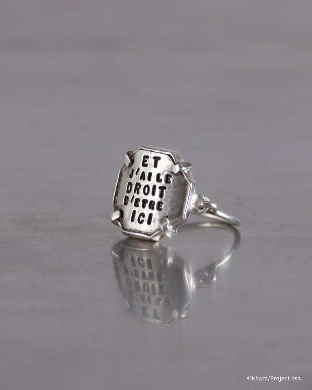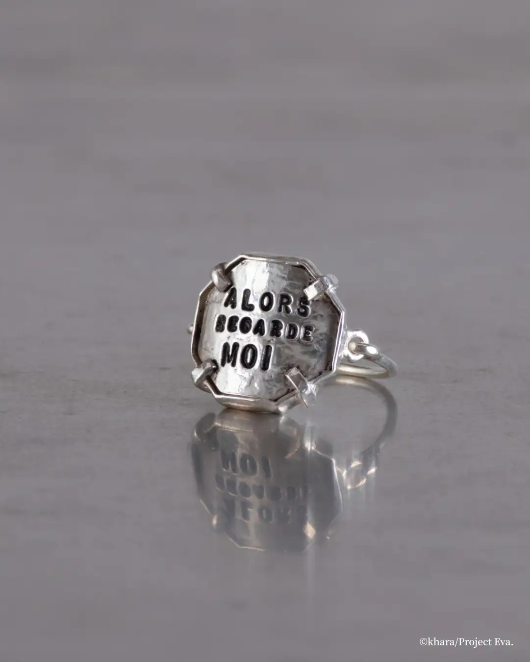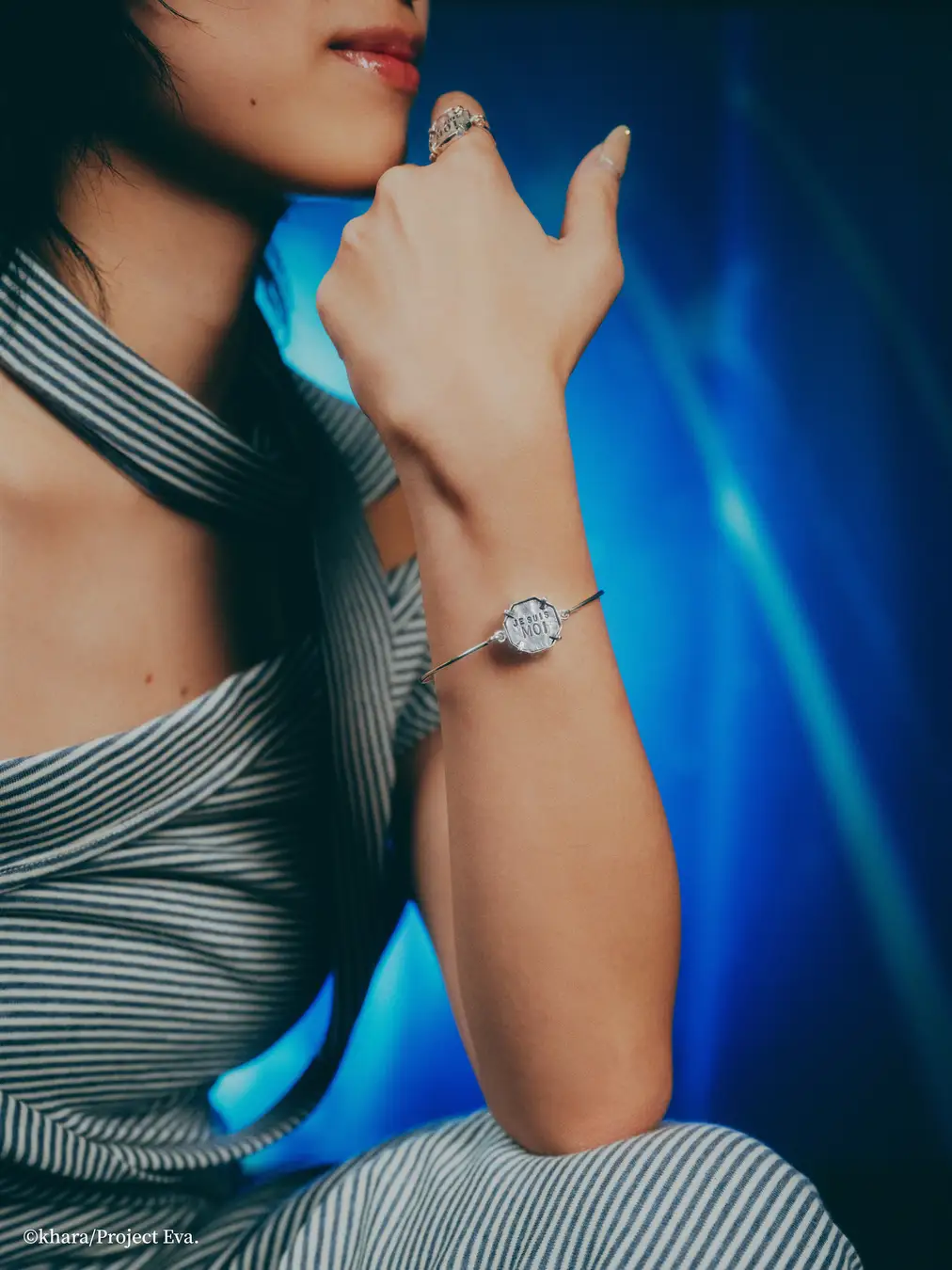 本次聯名共有三款:戒指、手環、項鍊。設計基礎延續品牌標誌性的金屬框架造型,再用手工敲打保留粗獷卻溫柔的質地,每件飾品都刻上角色的象徵性法文台詞,也象徵SERGE THORAVAL的特色。