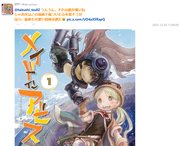 當然也少不了《來自深淵》啦,療癒神作 www。