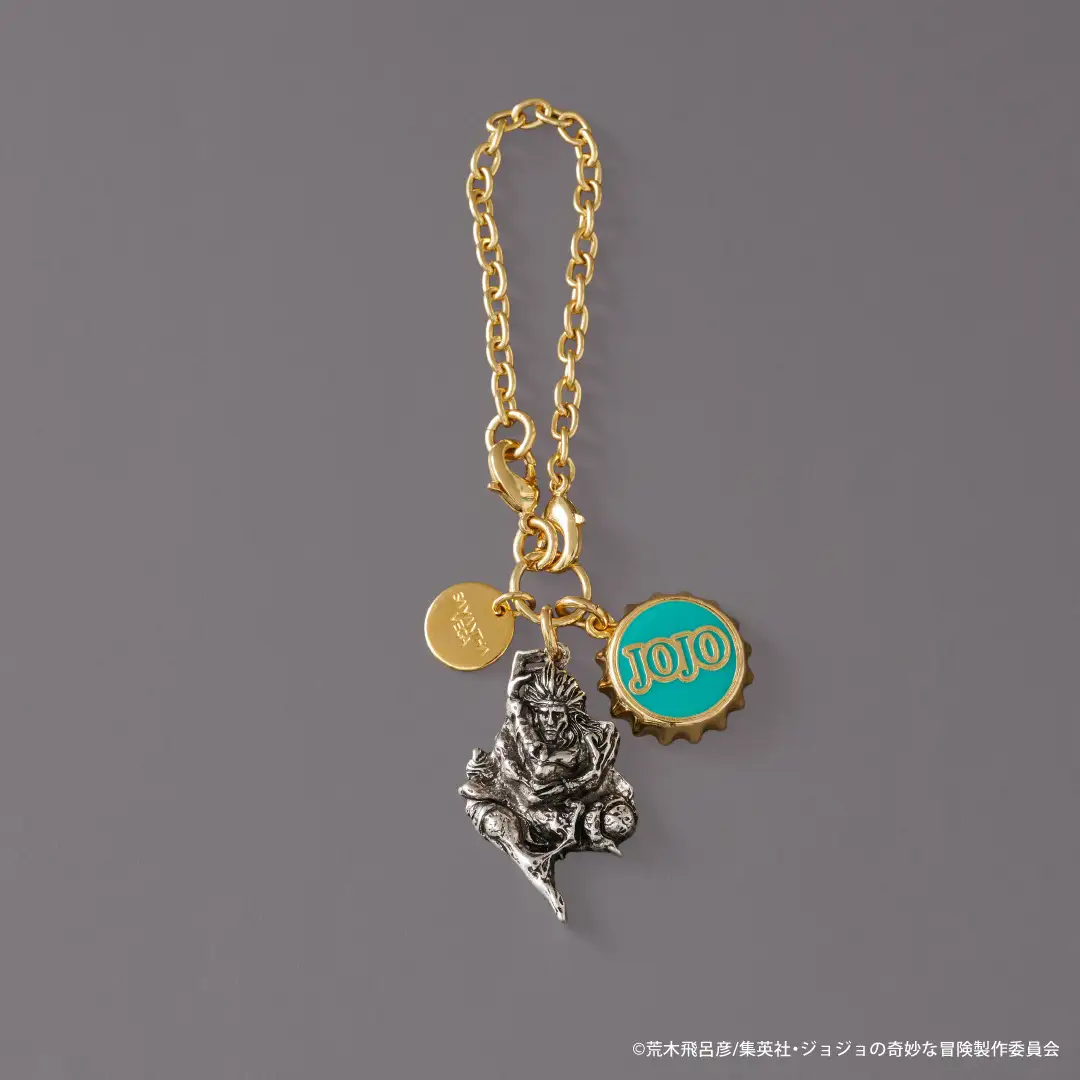 短夾側邊也加入耳環造型金屬件、背面印有卡茲簽名。吊飾則把被送上外太空、放棄思考的卡茲用金屬立體化呈現,相當具有JOJO特色 XD。