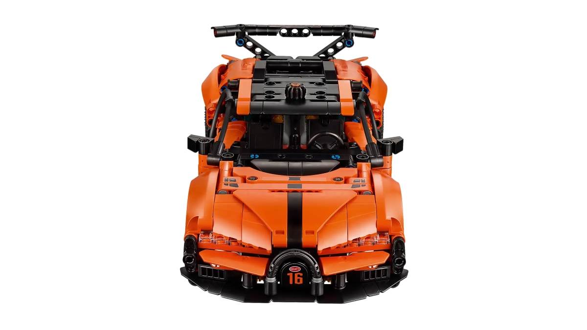 首先看到採用 771 片零件構成、組完之後長約 29 公分的布加迪 Chiron Pur Sport 極致超跑!從橘黑配色的車身、馬蹄形前水箱護罩、Bugatti 標誌與數字 16,到帥氣的尾翼都有很棒的還原度。把玩機構包含利用車頂旋鈕帶動前輪轉向、可開啟車門,以及掀開引擎蓋欣賞內部的 W16 引擎;除此之外,盒組內還有附上一組「兌換代碼」,能在賽車遊戲《狂野飆車:競速傳奇》(ASPHALT LEGENDS)當中裡解鎖這輛樂高賽車的數位版本。