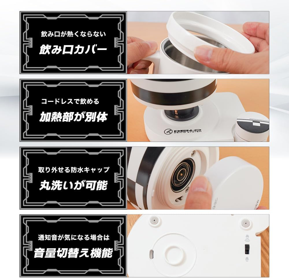 杯緣還附上防燙飲口蓋,讓你喝熱飲更安心。馬克杯本體是可拆、可無線使用,裝上防水蓋之後可以整杯拿去水槽裡直接洗,超方便。