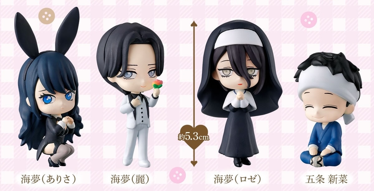 本次的「戀上換裝娃娃Season 2 角色收藏」轉蛋將海夢的多款造型和新菜製作成約兩頭身的可愛比例,收錄十六夜亞理沙造型的海夢、麗大人造型的海夢、蘿潔造型的海夢以及新菜共四種款式,在高約 4.4~5.3 公分的尺寸下雕刻還原角色的造型細節,並為他們打造了符合角色性格的動態,搭配第一季的四款造型一起擺設肯定超級可愛!