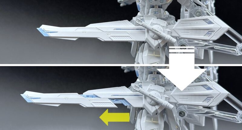 武裝部分再現了兩把高能量光束步槍組成「長射程光束步槍」的合體機構、兩把光束軍刀的連接機構,腰間兩側「旗魚3」軌道砲具備展開/伸縮機構。