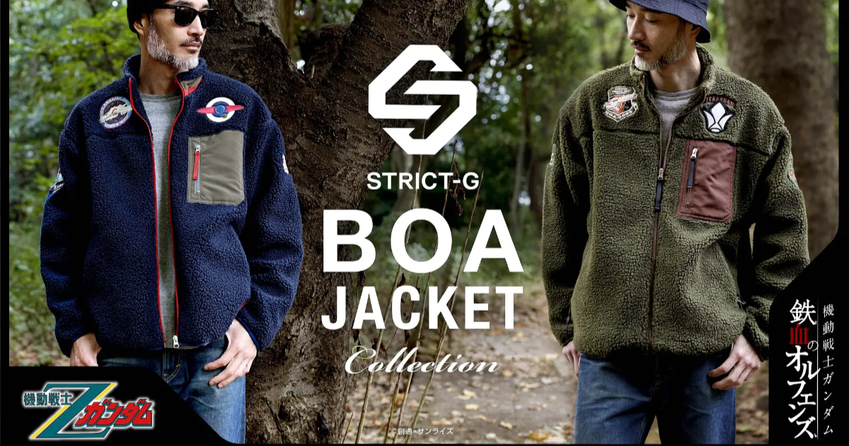 本次推出的兩款外套以蓬鬆溫暖的「羊羔絨」(シープボア)為主體,相當適合冬季穿著,整件穿起來不只保暖度滿點,外觀也走戶外風格,加上代表主題的布章搭配,簡單又實穿的風格絕對是各位鋼彈粉絲的穿搭選擇。