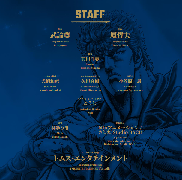 《北斗神拳》在 1984 至 1987 年起播出第一部動畫,後續 1987 年也推出第二部電視動畫,2003 年則推出過三話的 「新・北斗之拳」,都是非常久以前的製作。這也是自 2008 年劇場版《真救世主傳說 北斗之拳 ZERO 拳四郎傳》以來,相隔 18 年再度推出的新作動畫。作品將由全新製作團隊與聲優陣容,配合最新影像技術,忠實呈現原作的魅力。