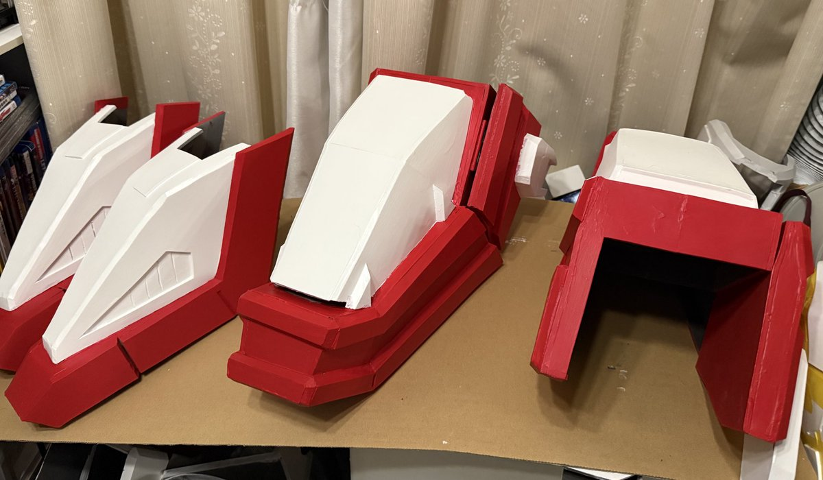 這套服裝由ひかる從零開始一個一個製作而成,透過紙板加上上色,甚至加入電系來呈現機體機關與特效,可說是費足苦心。