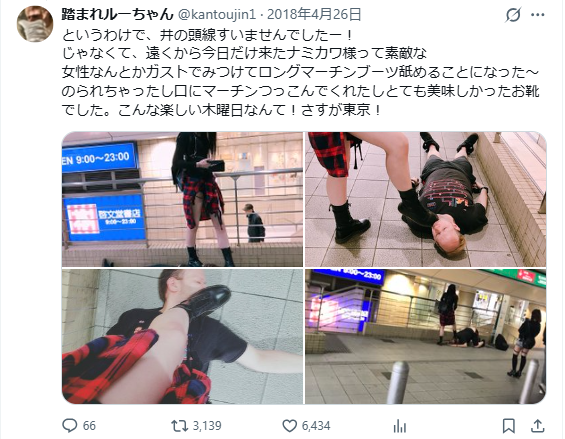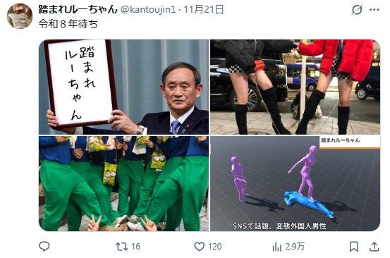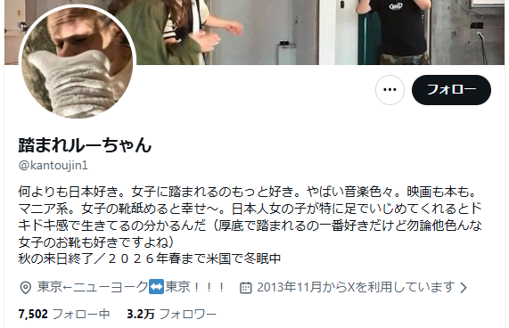 近日日本X上,有位外國人士因此受到關注,在綜藝節目「月曜から夜ふかし」上,因為喜歡「被女孩子踩」的48歲踏まれルーちゃん被報導,他時常在社群上分享自己被女孩踩踏的照片,也讓許多網友驚呼居然有人實踐如此「抖M」的作為。