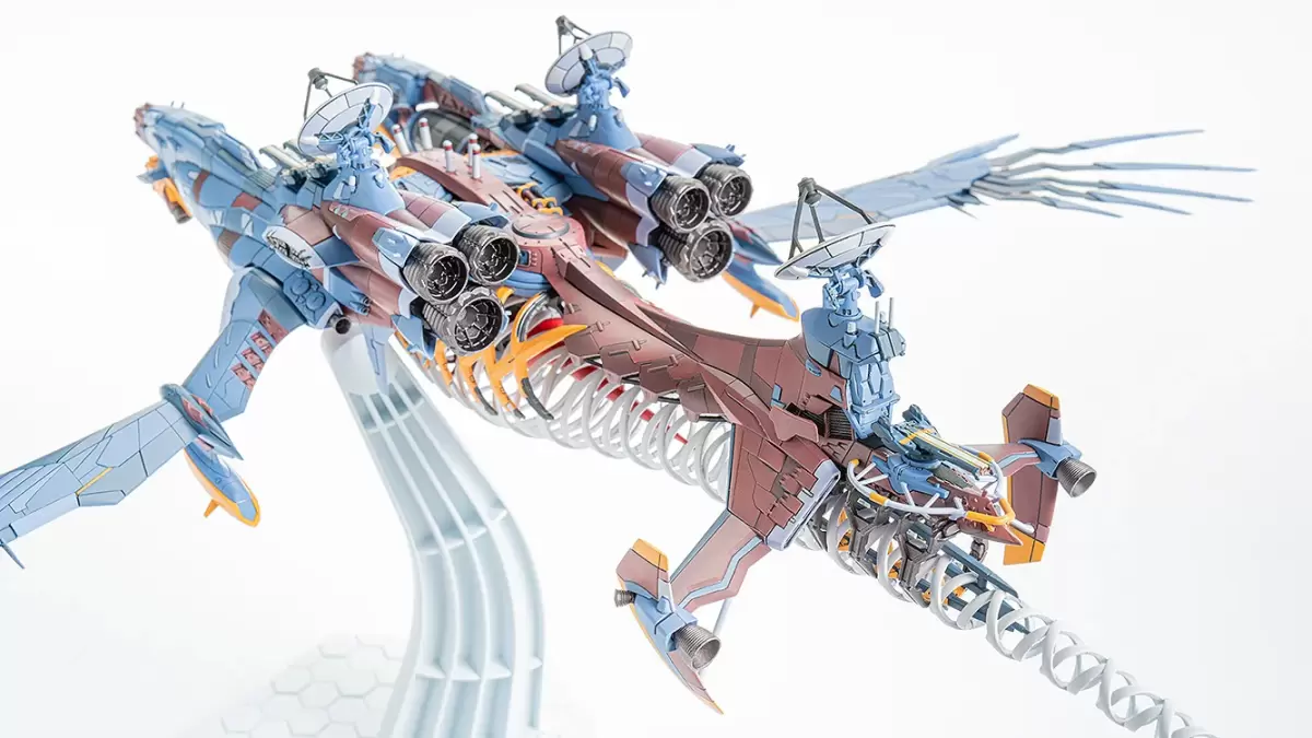 「PLAMAX AAA Wunder」運用藍、黃、白、紅...等多達 9 種成型色零件製作,組裝完成後具備接近劇中設定的分色,並擁有全長約 509mm、全寬約 406mm 的魄力尺寸。整體造型細膩再現彷彿巨鯨骨骼的主結構、各部複雜的裝甲分割與配管,以及天線、砲塔、引擎、推進器...等豐富的機械細節,自行塗裝上色後便能精緻的細節更為展現。