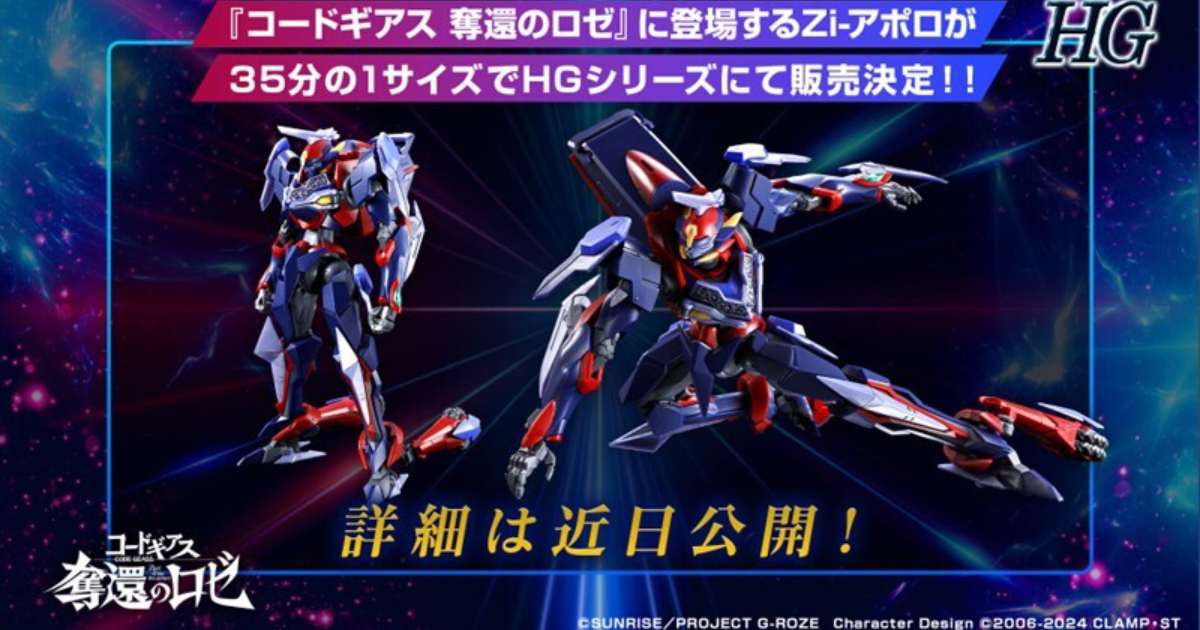 由日本BANDAI SPIRITS 公司 HOBBY 事業部所推出的機器人組裝模型『HG(High Grade)』系列,預告了出自動畫《CODE GEASS 奪回的Rozé》的兩架主要機體「Zi-阿波羅」、「Zi-阿耳忒彌斯」商品化的消息,發售日期未定。