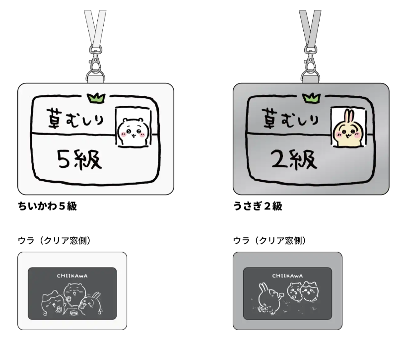 ちいかわの草むしり検定証カードホルダー 「ちいかわ 5級」と「うさぎ 2級」柄