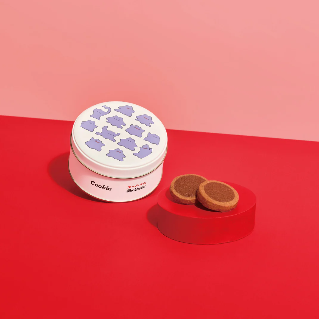 香濃可可風味一口餅乾,裝在百變怪造型鐵盒裡。個別包裝有百變怪 7 種不同姿勢(隨機)。