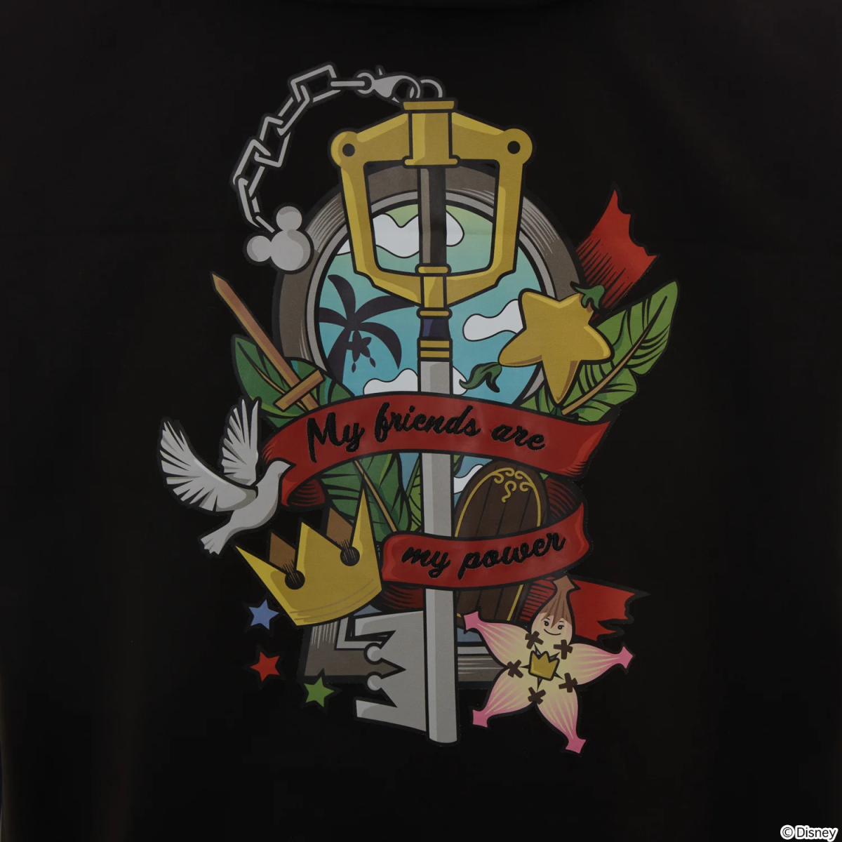 最吸睛的重點在背後的刺繡+印花,主題是「王國之鑰」,是由SuperGroupies特別設計的原創圖案。另外,背上還有「My friends are my power」的英文句子,也是亮點之一。