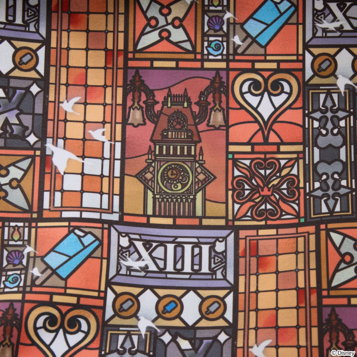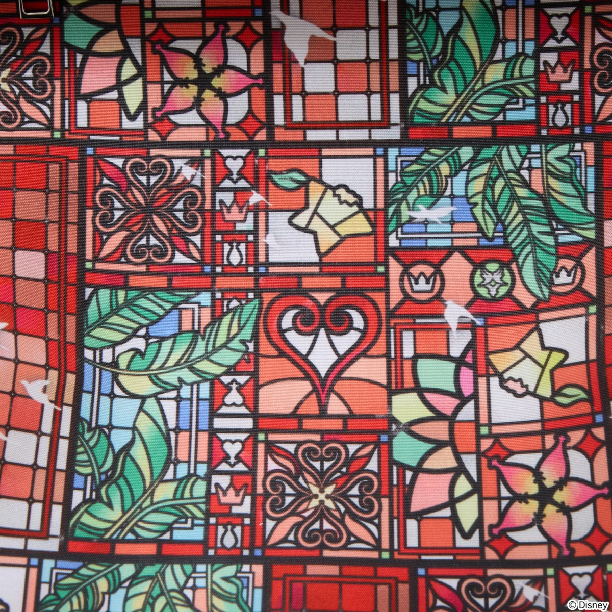 內裡則以「彼此相連的心」為主題,把洛克薩斯相關的地點、人物、道具都做成彩繪玻璃風的圖案。像是跟索拉共同出現的展翅飛鳥、與索拉成對的四顆心、洛克薩斯、阿克塞爾、希恩三人一起吃過的海鹽冰棒,還有其他與他有羈絆的角色意象與配色,全都被巧妙地融入其中。