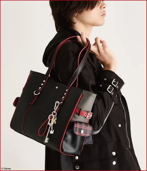 這次聯名以《王國之心》的索拉 & 洛克薩斯為主題,包含外套、皮革托特包與包包用造型鑰匙圈,以作品的世界觀為主軸,打造出獨特的聯名樣式。