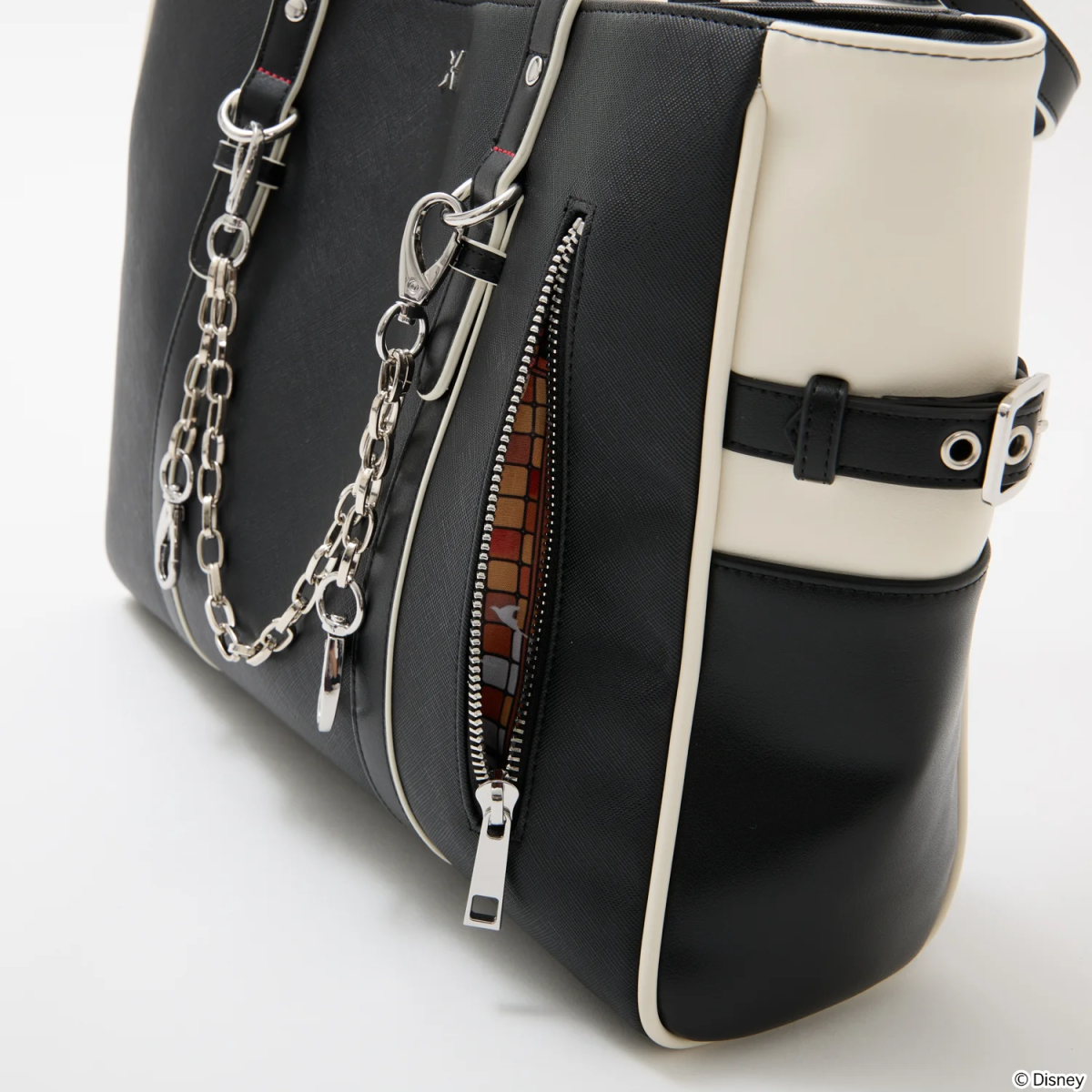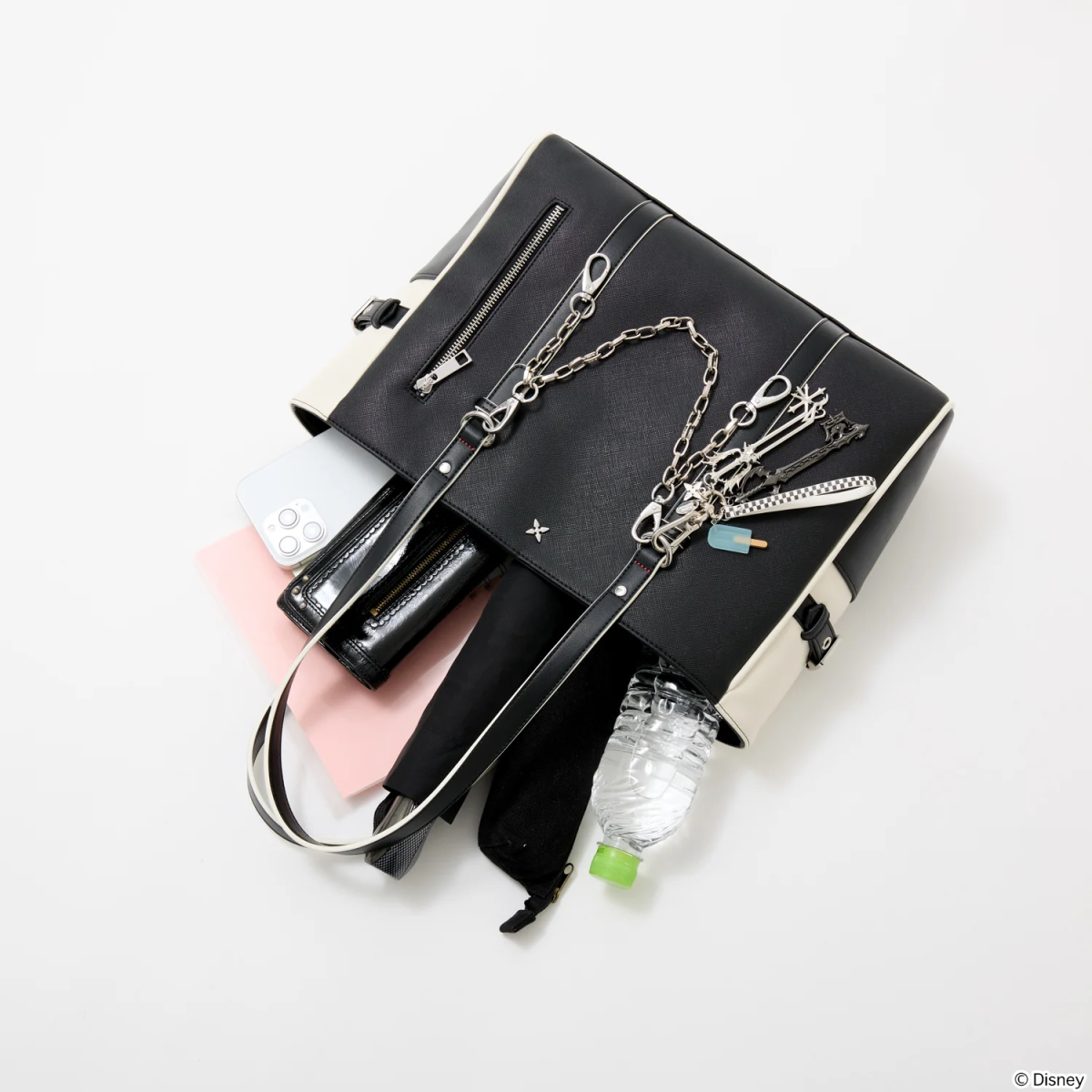 以黑色和米白色的單色風為主軸,將洛克薩斯服裝意象融入設計的托特包。整體帶有「XIII機關」的風格,像是直式開口的拉鍊口袋、鏈條裝飾等細節。包包上還放上洛克薩斯象徵性的「X」金屬飾牌。