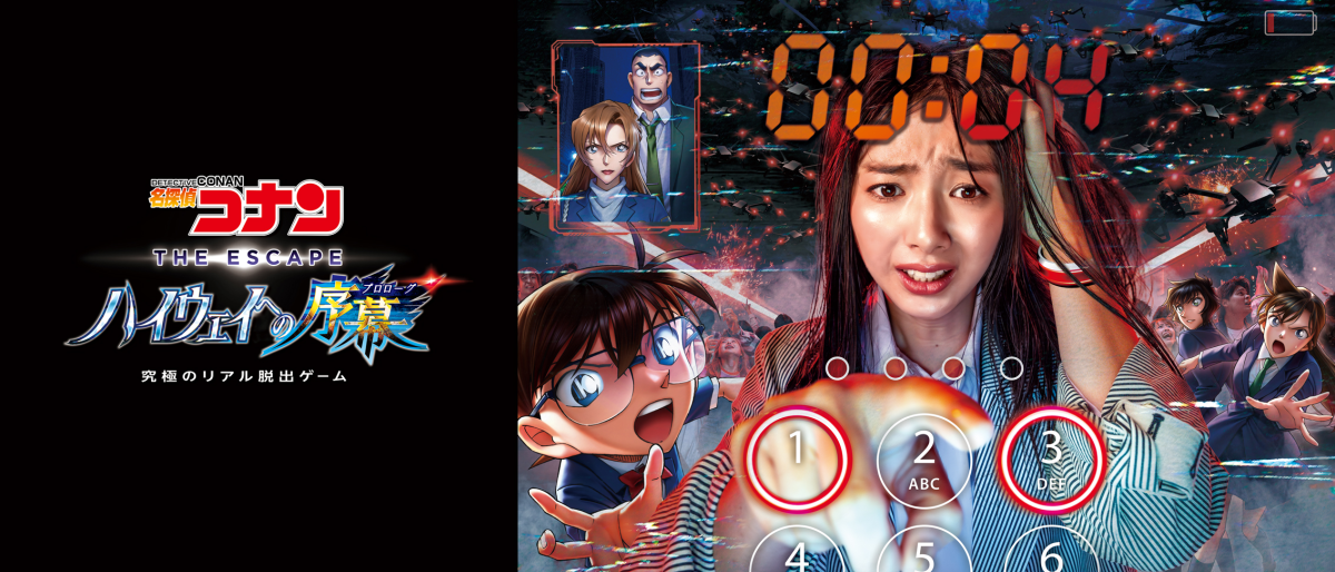 首先是室內逃脫設施『名偵探柯南 THE ESCAPE~通往高速公路的序幕~』,遊玩內容就是「用自己的腳跟腦袋破案」的柯南式逃脫遊戲,也是這次活動最大亮點。劇情與劇場版《高速公路的墮天使》直接連動,將呈現正篇前的原創故事,讓各位可以補足更多故事環節。