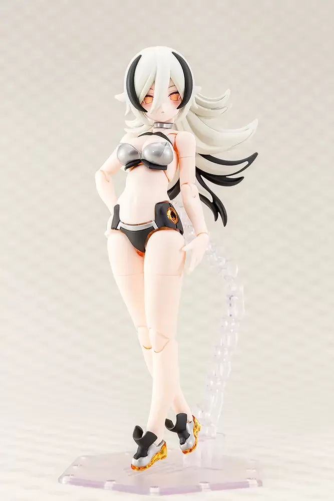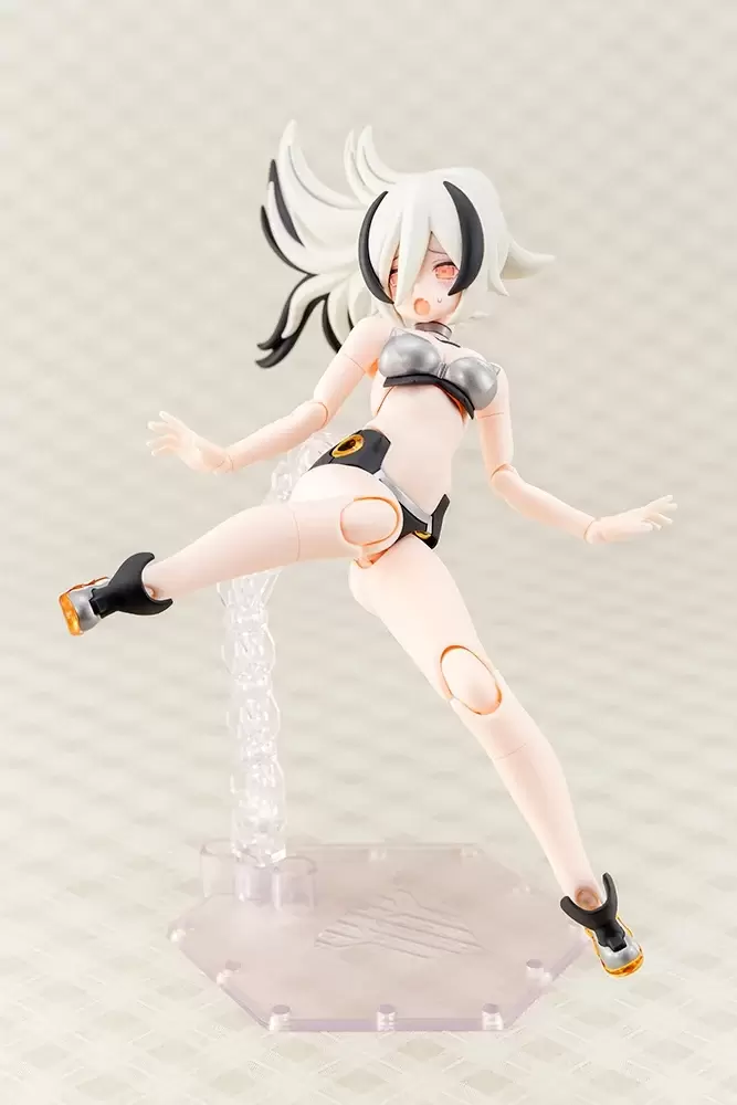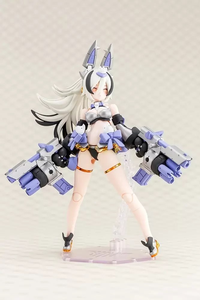 整體外裝零件採鈷藍、銀灰、黑、透明橘等成型色表現泳裝般的夏日風情,並附上能補足機身標誌、細節分色的專用貼紙。在素體裝上各部外裝零件後就能換裝為「武裝模式」,主武器的雙槍「咆哮PM5(銀色規格)」兼具射擊大口徑子彈、格林機槍兩種機能,還能藉由共通規格 3mm 接點、替換組合方式擴充玩法,像是兩把「咆哮PM5」能夠連結長柄組成武器、將格林機槍部分連結雙手。