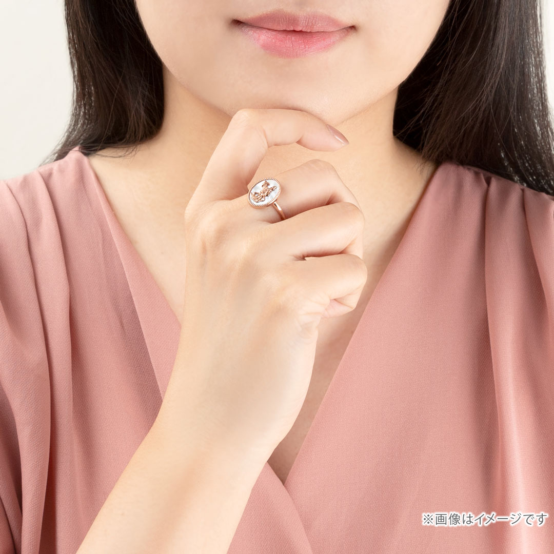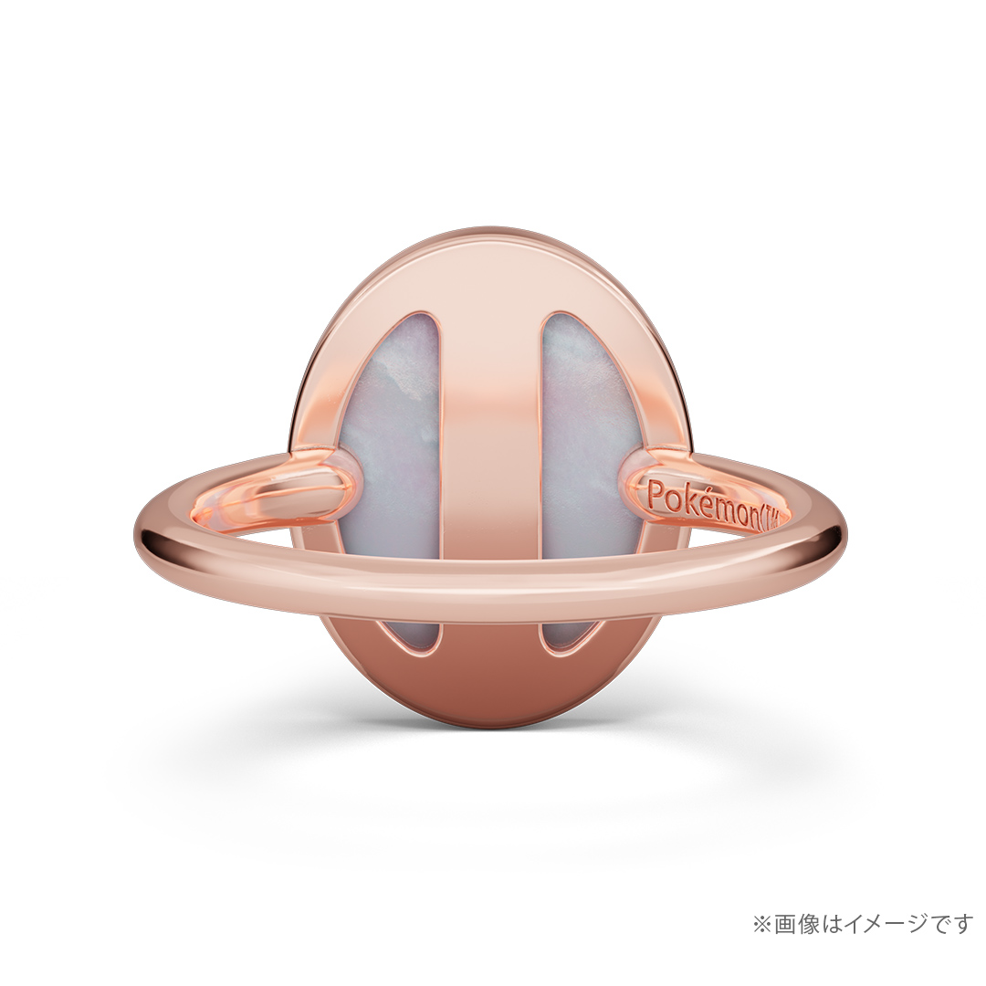 銀色白蝶貝戒面上再加上玫瑰金的鍍色,呈現出仙子伊布那種療癒系的柔和能量。