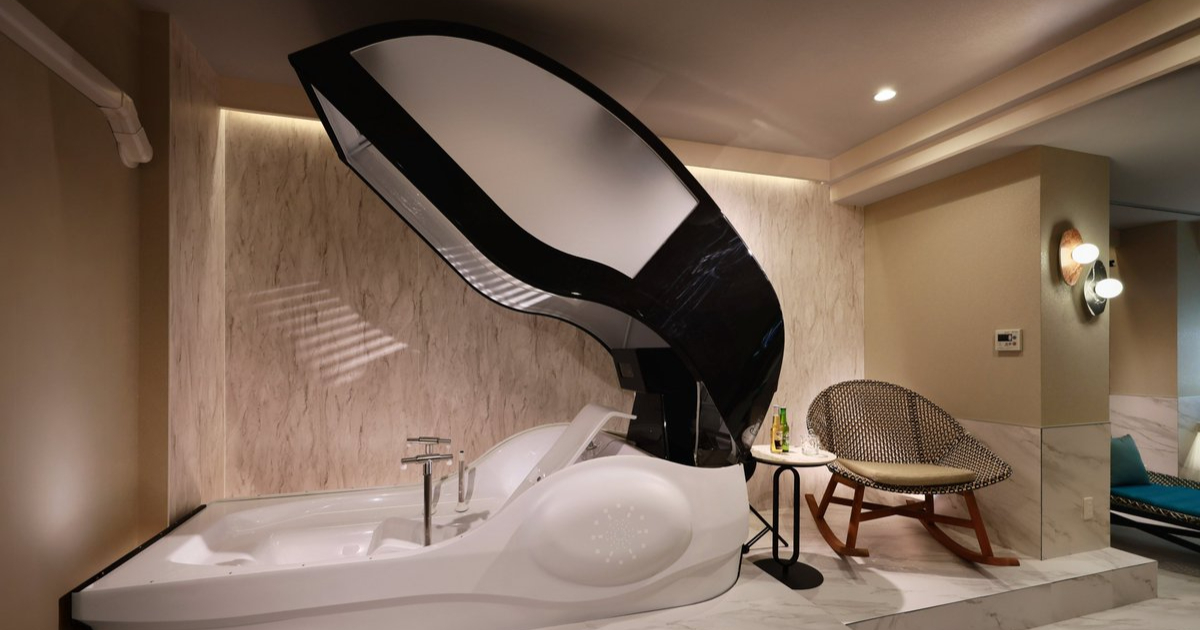 為了讓大家能在日常中也享受到這種「未來感」,飯店特別把這台裝置放進館內的特別房型。主打「洗滌・療癒・調整」的沉浸式放鬆體驗,進去就像穿越到近未來的 SPA,聽起來就超科幻。