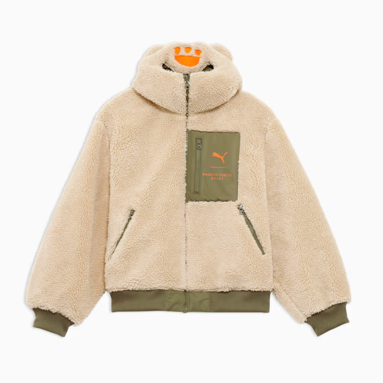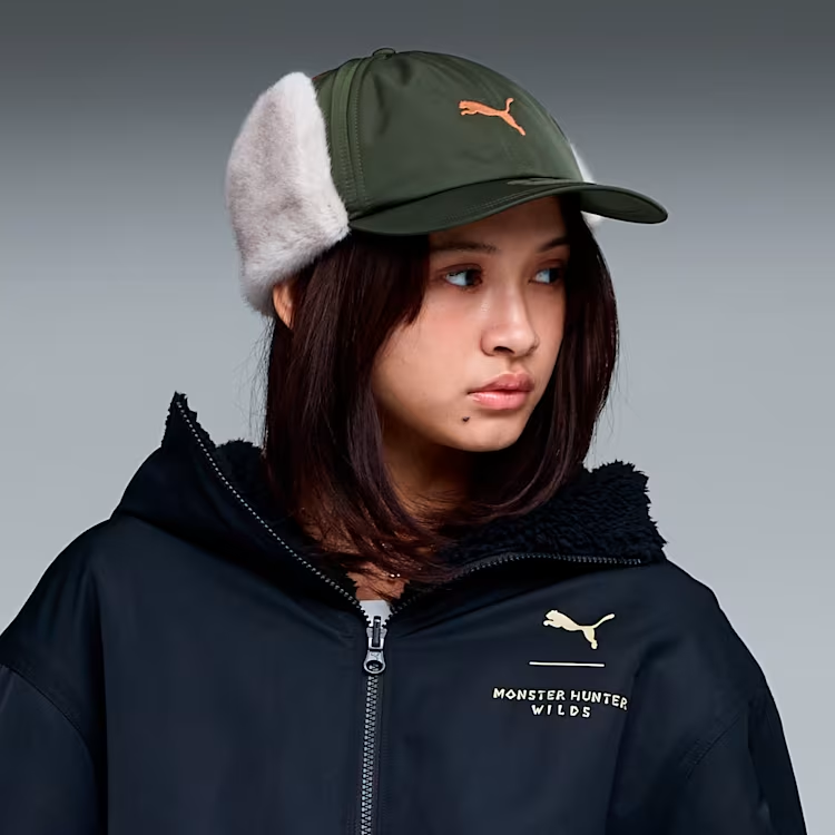 這次的「PUMA x MONSTER HUNTER WILDS」合作,把《魔物獵人 荒野》的世界觀直接搬到鞋款、服飾跟配件上,是一整套限定商品。像是重新繪製的艾路貓、魔物圖案,都變成了設計元素。最吸睛的莫過於把艾路貓結合PUMA招牌的獵豹標誌,成為一個趣味的結合樣貌。