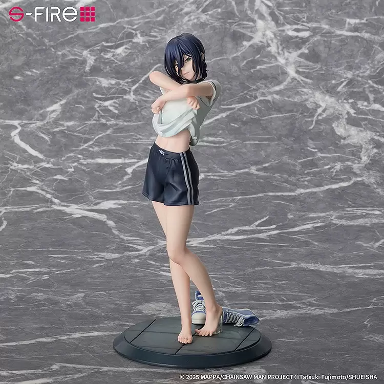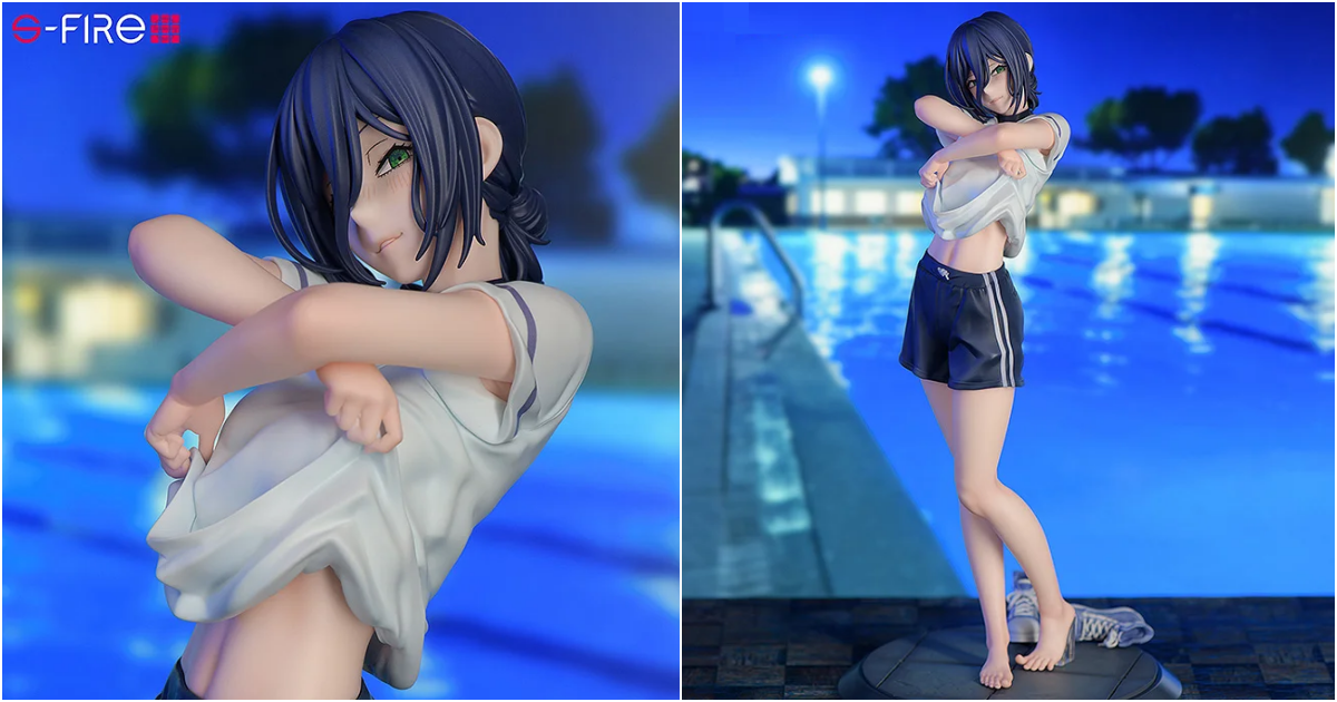 S-FIRE「劇場版『鏈鋸人 蕾潔篇』蕾潔」無比例模型,以劇中令人心動又心碎的學校泳池場景為靈感,將蕾潔邀約淀治裸泳、直接撩起上衣的動人模樣立體化~尺寸全高約 25 公分,細膩地再現衣服上的褶皺與運動短褲的質感,連腳趾頭的細節都栩栩如生刻劃。微微上揚的嘴唇、略帶紅暈的雙頰,難以捉摸的綠色眼眸凝視著你,展現出既無邪又神秘的神態。底座處還有剛脫下的鞋子...這樣的蕾潔你能忍住嗎?