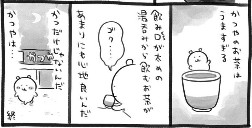另外店鋪內附的茶,當你吃太多炸物時這種帶有微微的澀味反而超對味,也好喝到不行。吉豚屋啊……,不是只有炸豬排厲害而已。看得出來ナガノ對吉豚屋,真的是滿滿的愛阿 XD,明明不是業配卻用漫畫讓人感受到他對吉豚屋大推。