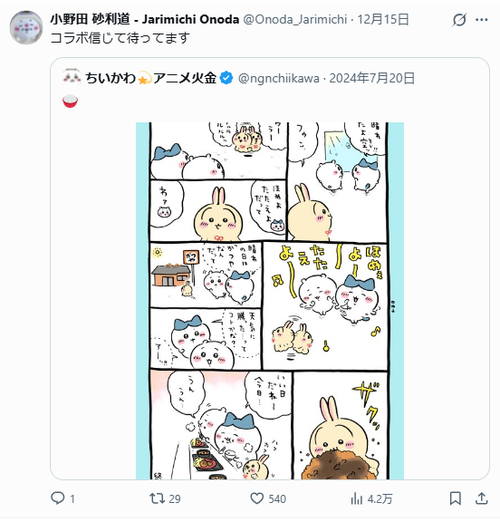 網友也發現,過去《吉伊卡哇》的漫畫裡面就已經出現過吉豚屋了,根本可以期待聯名了吧 XD。