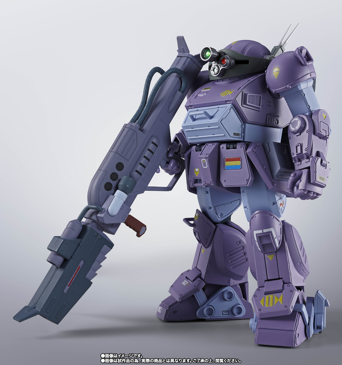 武裝則搭載了新規零件製作的大型對戰艦射擊武器「GAT-35 LOG GUN」和「降落傘背包」,LOG GUN 具備極為魄力的尺寸與精密細節,瞄準鏡重現可動機構,特徵的砲口採用透明零件再現。降落傘背包也徹底再現傘布柔軟垂下的造型,頂部艙蓋展開後可露出內藏的主傘,下方懸掛的三組彈匣零件都能拆卸下來。這套武裝也能對應另售的「HI-METAL R 眼鏡鬥犬」系列機進行換裝。