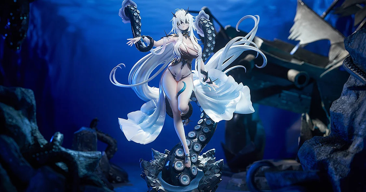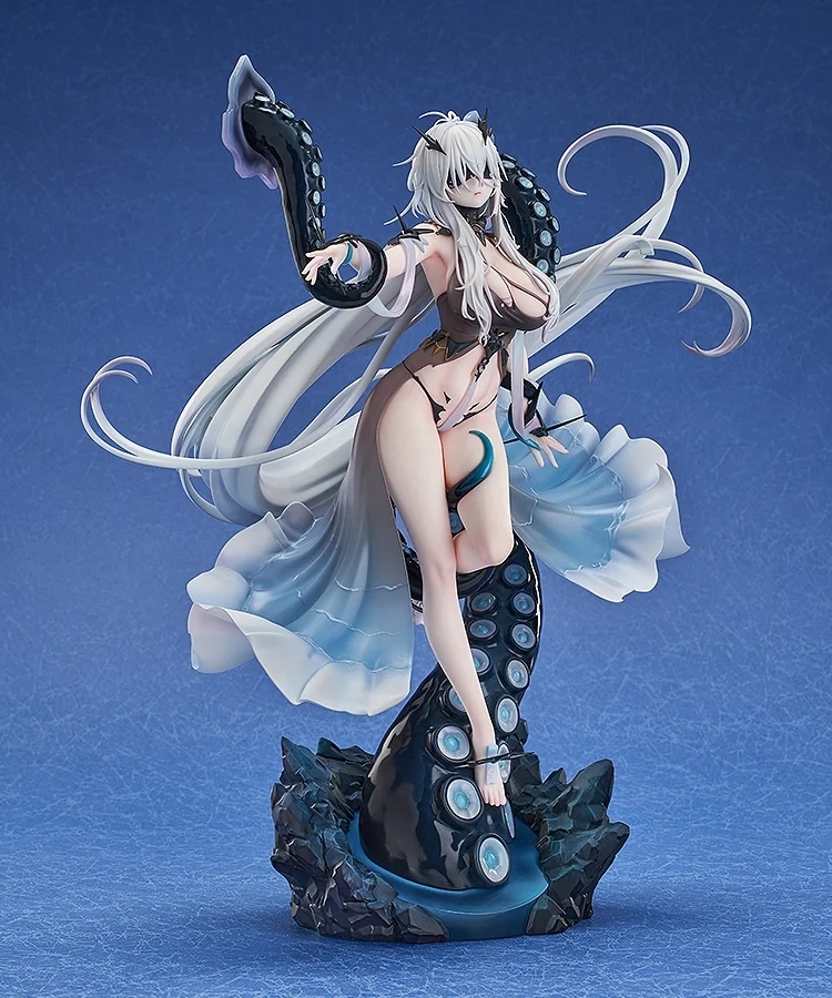 本作高約 29.5 公分,將來自深海的深淵蠢動者的身姿充分再現!從彷彿沒曬過太陽的亮白膚色、自然垂落的白髮、眼罩、服裝的透明感與漂亮漸層,到展現出黏滑質地的巨大觸手都考究還原,而且還附上了張開雙眼的吐舌表情零件,那讓人印象深刻、造型衝擊的分舌仔細地被打造出來,彷彿感受到了幻想號正在捕食的邪魅瞬間。