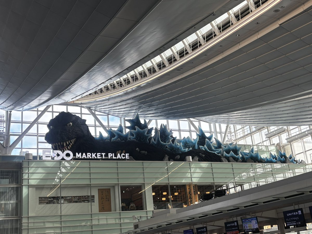 最吸引人的就是全長40公尺的哥吉拉巨像在出發大廳的上方,今日(12/19)在羽田機場內舉辦完工發表會,正式對外亮相,讓這尊破壞神正式進駐羽田機場。
