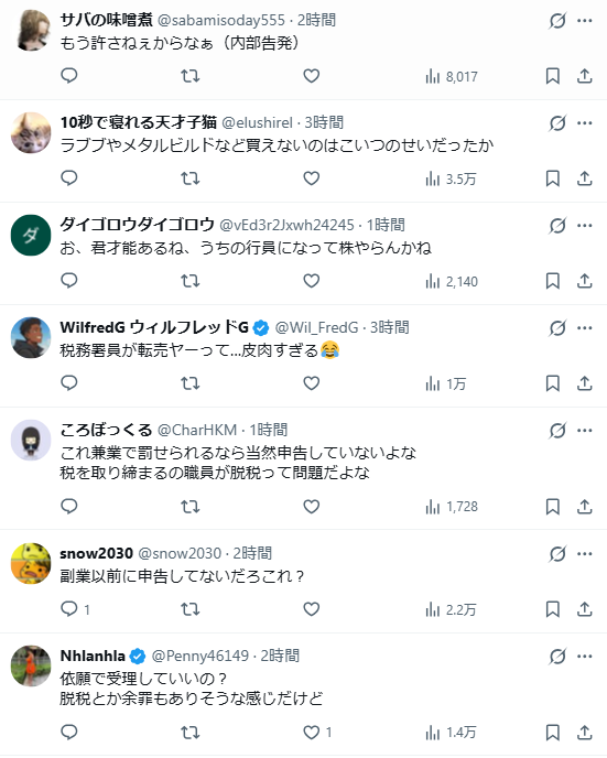 根據名古屋國稅局指出,這名在愛知縣內稅務署任職、約30多歲的男性職員,從2022年4月到今年10月約三年多的期間,透過二手交易平台等管道,將模型玩具、DVD等商品轉賣多達1516次,累計銷售金額約 810 萬日圓。