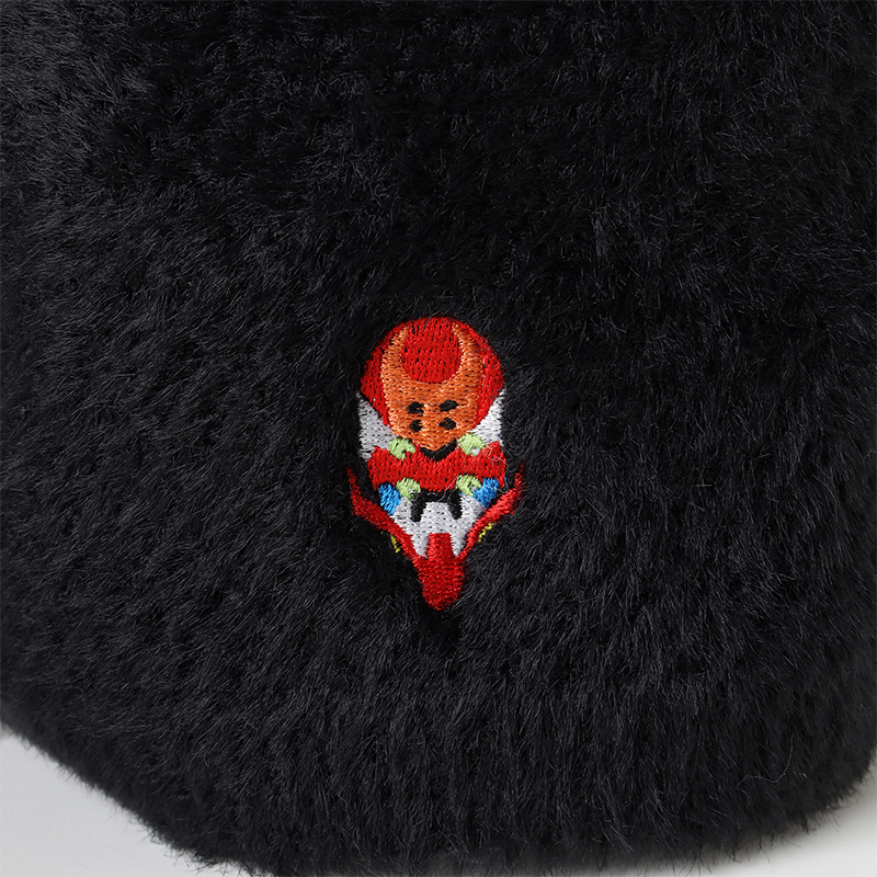 採用觸感柔軟、輕盈順滑的合成皮革製成,帽身正面繡有KANGOL的袋鼠圖案,帽側則配有RADIO EVA初代初號機的圖案,與純黑帽身完美融合,展現時尚風格。