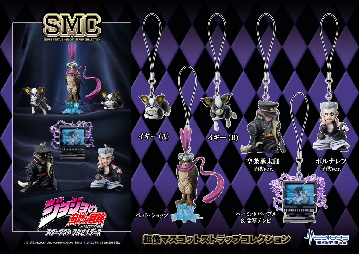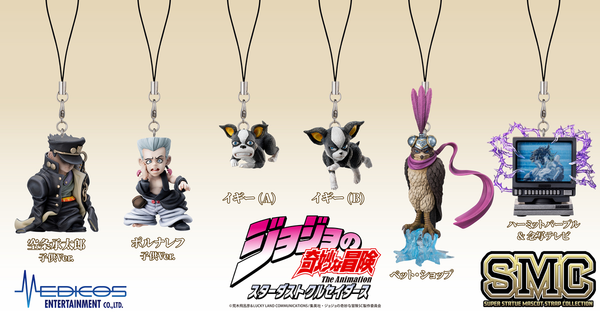 日本 MEDICOS 玩具公司將以人氣動畫《JOJO的奇妙冒險》為主題,推出SMC(SUPER STATUE MASCOT STRAP COLLECTION)