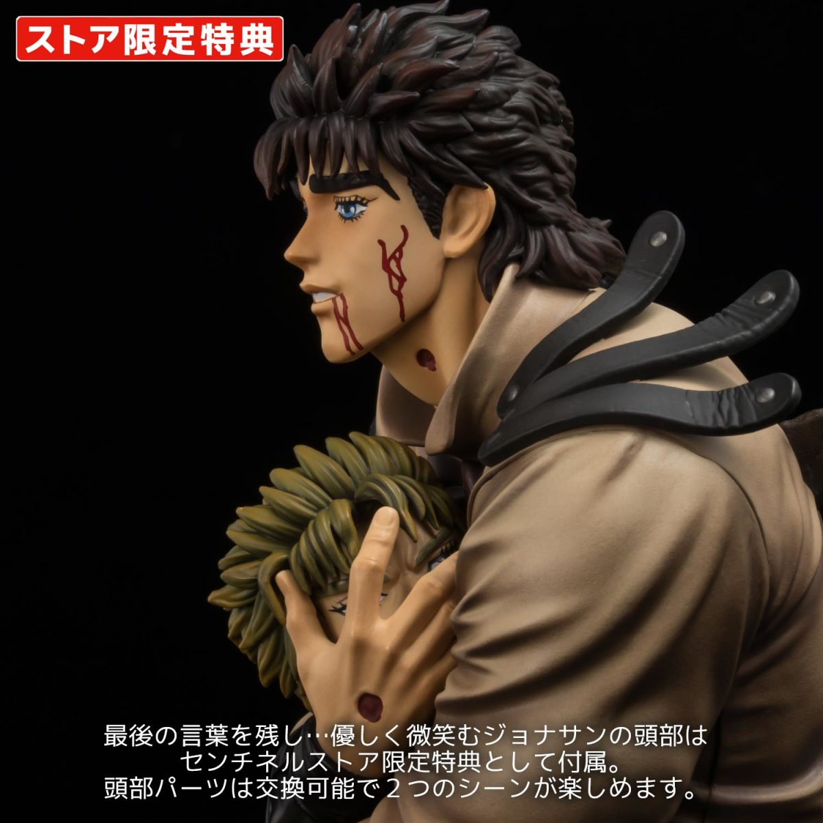 「千值練 FIGURE MUSEUM 喬納森·喬斯達&迪奧 Special Color」1/8 比例完成品,以特別配色回歸!重現兩人在船上的最終決戰場景,將大喬抱著 DIO 頭部、兩人同歸於盡的經典結局以精細的細節和色彩完美再現。有別於原本較為明亮的配色,這次的特別色採用復古、仿舊的棕色調呈現,營造出泛黃老照片的氛圍。底座的齒輪形狀設計為可以串聯組合的造型,可以與系列商品共同展示。