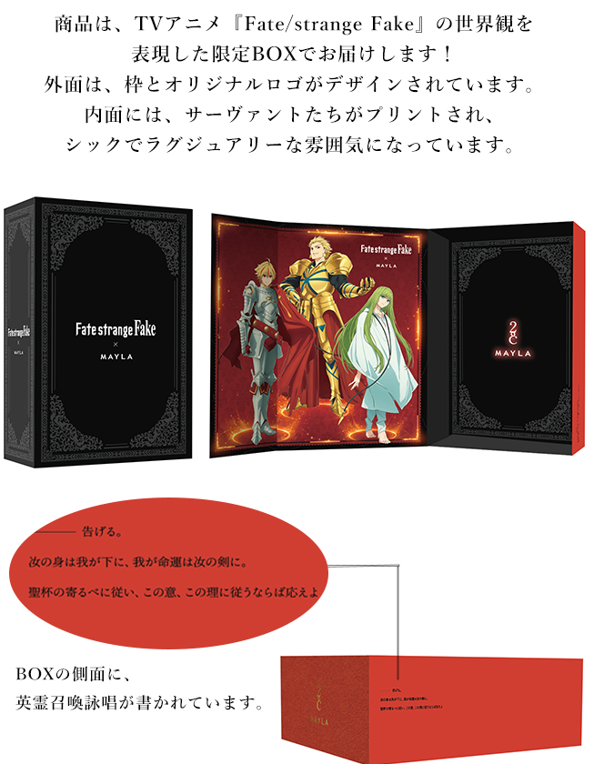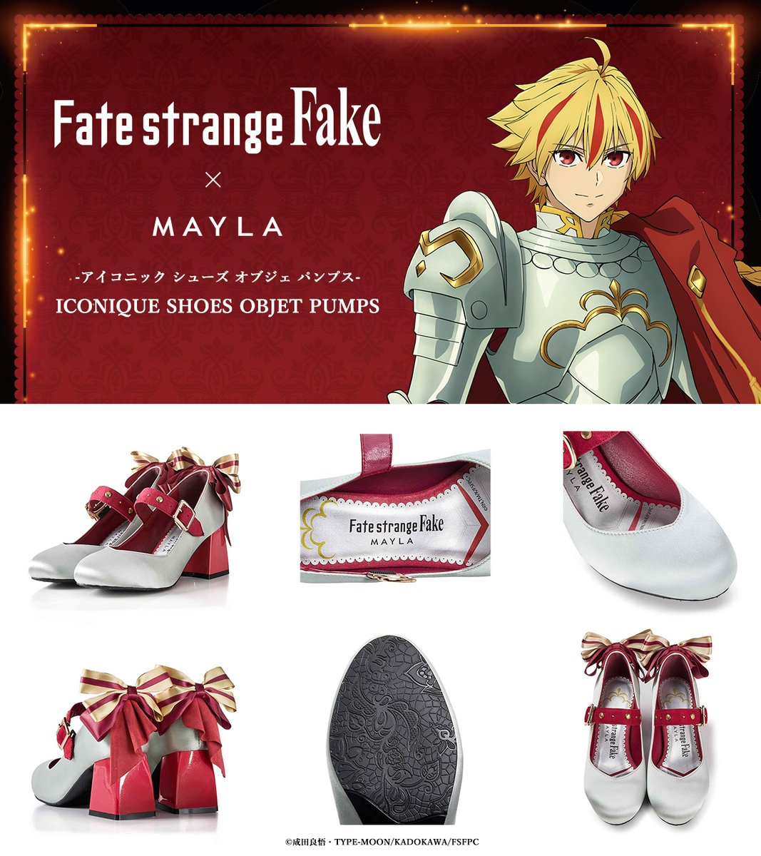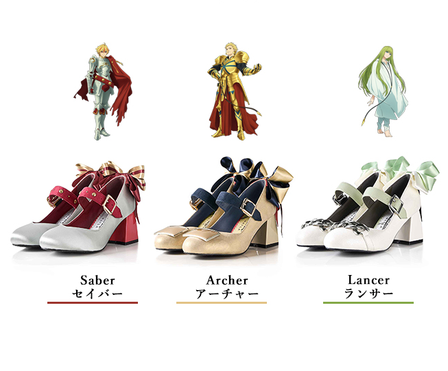 近日宣布與《Fate/stay night》為題材的外傳《Fate/strange Fake》合作,推出以Saber & Archer & Lancer 為主題的高跟鞋款。售價為28,600日圓,將於12月29日起於官方網站開放預購。