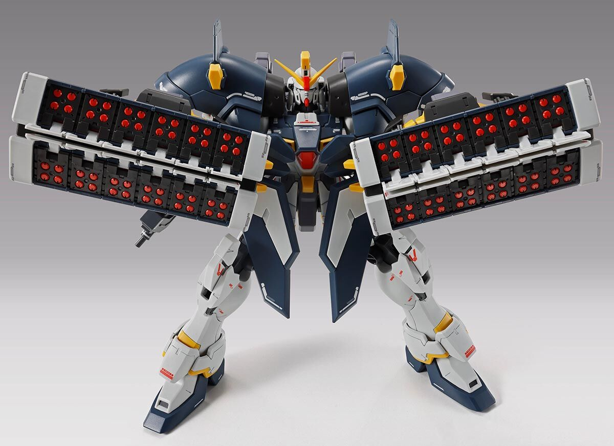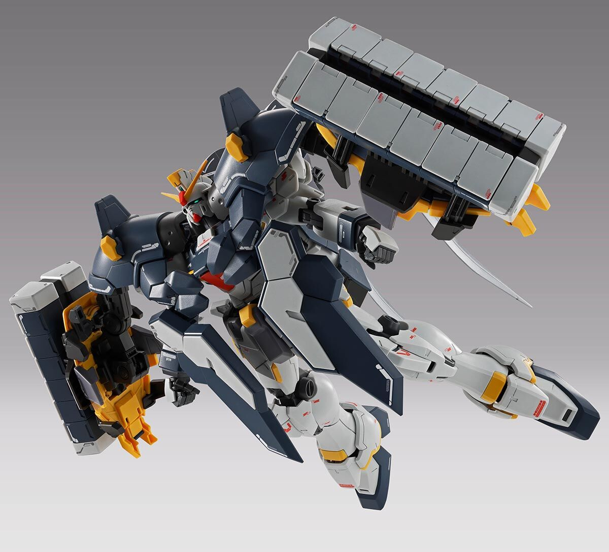 腰部兩側護盾、肩甲兩側的連接吊臂、小型護盾、導彈莢艙則使用新規零件製作,為強調小型護盾的靈活性,新規吊臂零件採用多軸可動、鎖定機構設計,能朝多方向進行轉動並固定特定角度。小型護盾透過可拆卸式的轉接零件就能懸掛巨大的導彈莢艙,導彈莢艙具備各艙門展開機構,內部導彈頭以紅色成型色零件呈現,能擺設出全彈發射時的魄力場景。