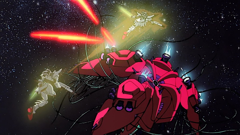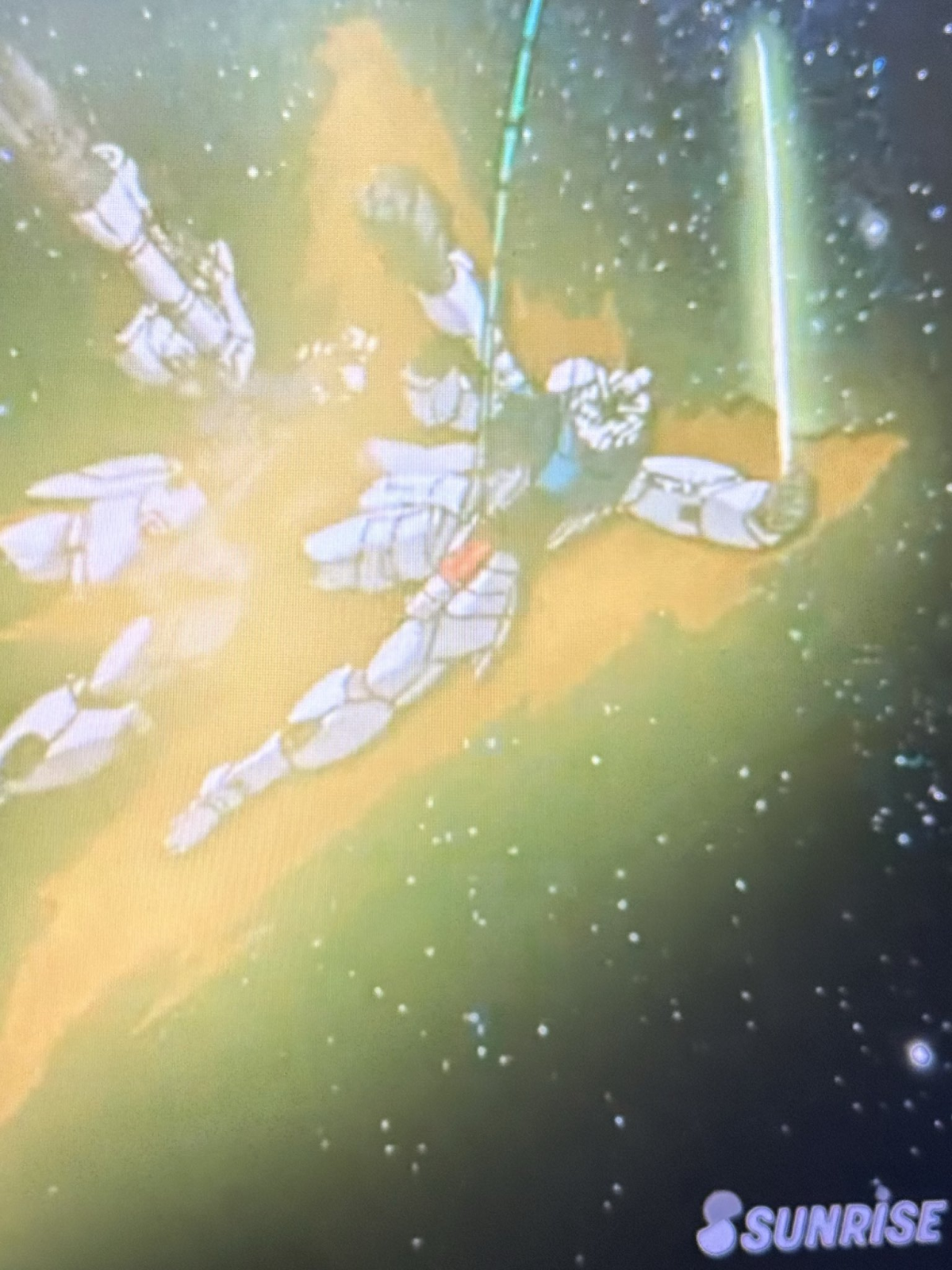 這次取材的場面,是發生在宇宙世紀0123年的最終決戰——由西布克·亞諾與鐵假面(卡羅佐·羅納)展開的生死對決。F91透過 MEPE(金屬剝離效果) 產生殘像、戲耍拉弗雷西亞的畫面,一直被視為鋼彈系列中數一數二的經典名場面。