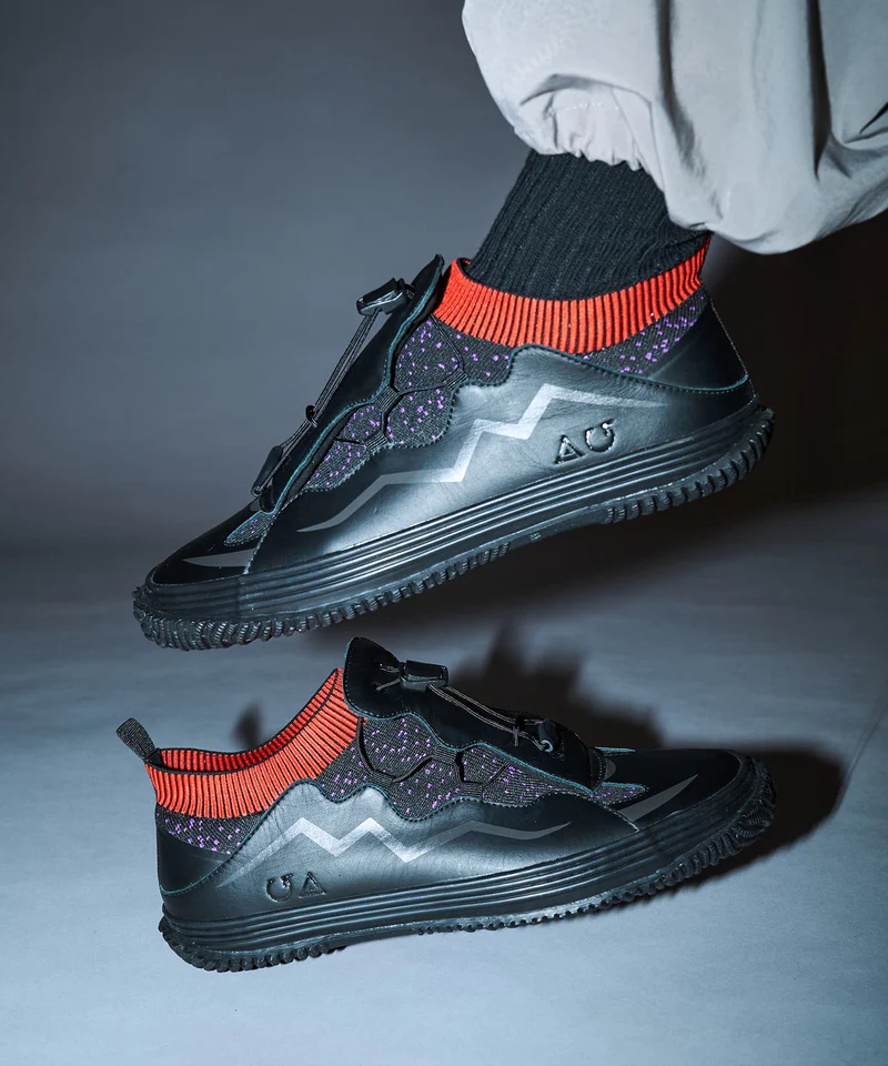 直接以劇中草薙素子所穿的「戰鬥靴」為設計原型。同樣採用裁切浪費較少的針織鞋面,外底使用含有約30%再生橡膠的「VIBRAM ECOSTEP RECYCLE」,整體更強調機能性與永續理念。
