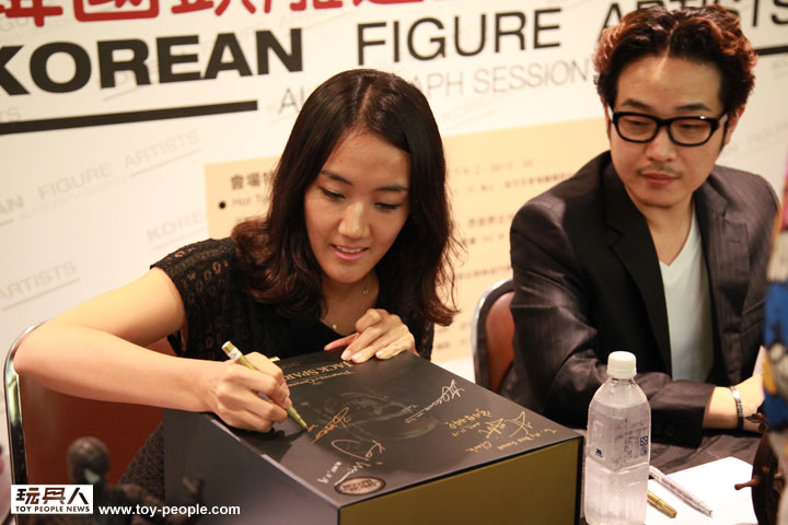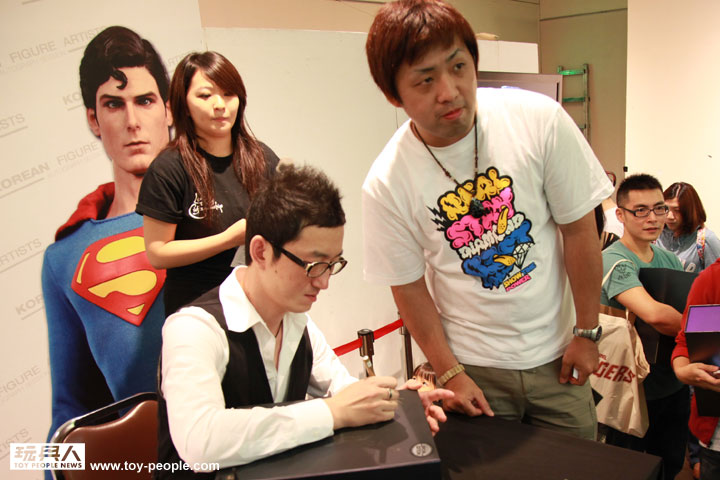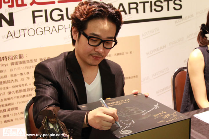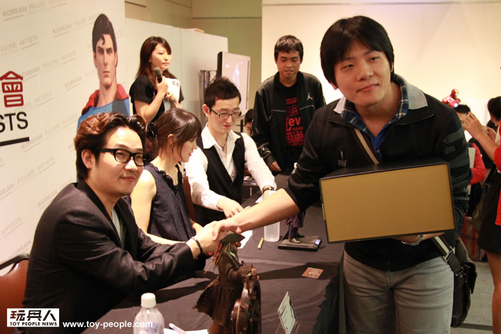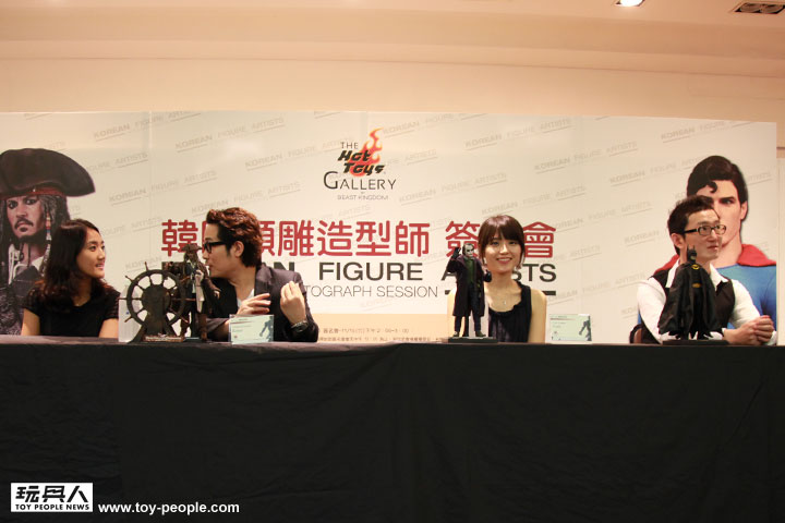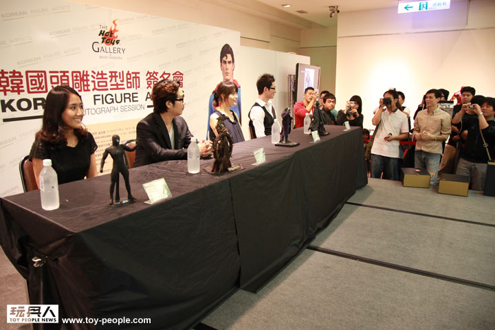 今年,由野獸國玩具所舉辦的2011 Hot Toys年度展提供了這個絕佳的機會,在台北舉行了設計師簽名會,特別邀請到來自韓國的四位大師級頭雕師與台灣的玩具人近距離接觸,親切的一一屬名並簽名、握手以及合影留念!