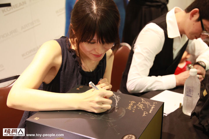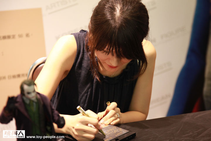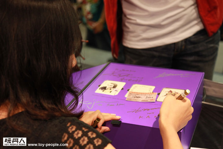 ↓ 個性美女頭雕師Kim 相當認真地為每一位玩具人簽名。