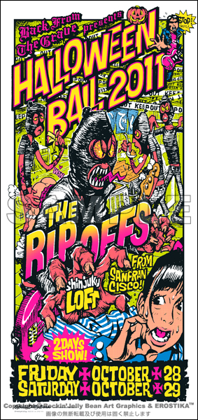 上個月所舉辦萬聖節變裝搖滾演唱會“THE RIP OFFS JAPAN TOUR 2011”,邀請到了知名搖滾團體“THE RIP OFFS”,並由Rock’in Jelly Bean 繪製海報,現場所發行的周邊商品現在已經能夠在Erostika 官方網路商店購買,有意購買的玩具人請至:Erostika On-line Shop