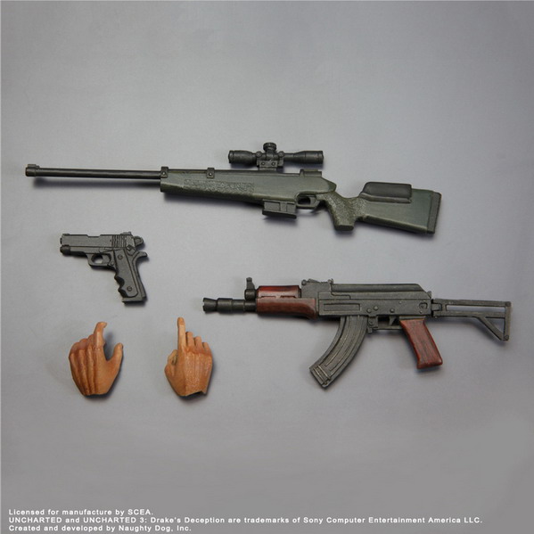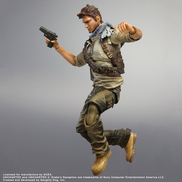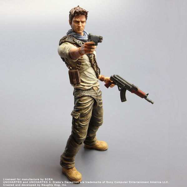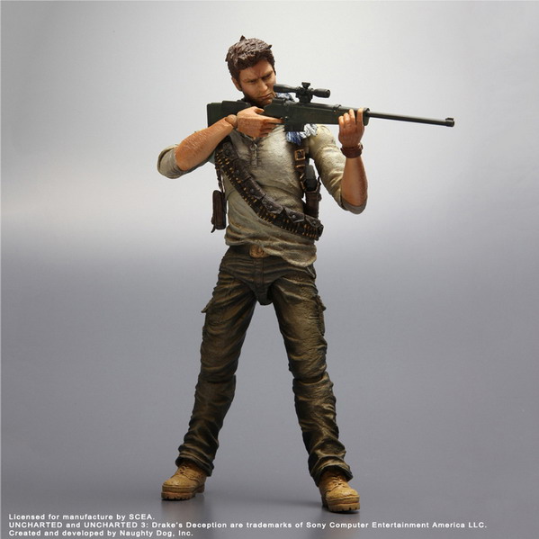 PS3大作,妙趣橫生緊張刺激的動作解謎遊戲「秘境尋寶3」(UNCHARTED 3)由PLAY ARTS改推出可動公仔。從釋出圖片看到,該作品可以擺出許多遊戲裡的經典動作,而造型則是採用3代中主人公德瑞克在沙漠裡的造型。臉部表情少了那麼一點詼諧逗趣的親和力,反而多些英雄氣慨與殺氣。作品大小約W100×D53×H222mm,附上長槍兩把(T-bolt-Sniper、AK47)、手槍一把(45 Defender),以及可替換的手掌,日幣參考售價5460圓,預計2012年3月推出,提供大家參考!